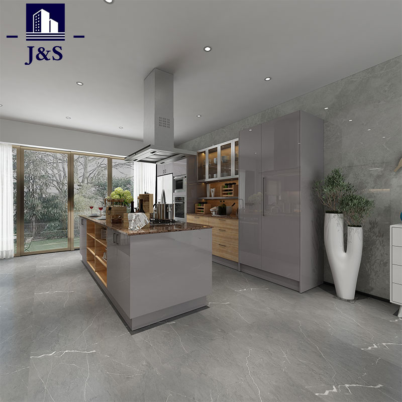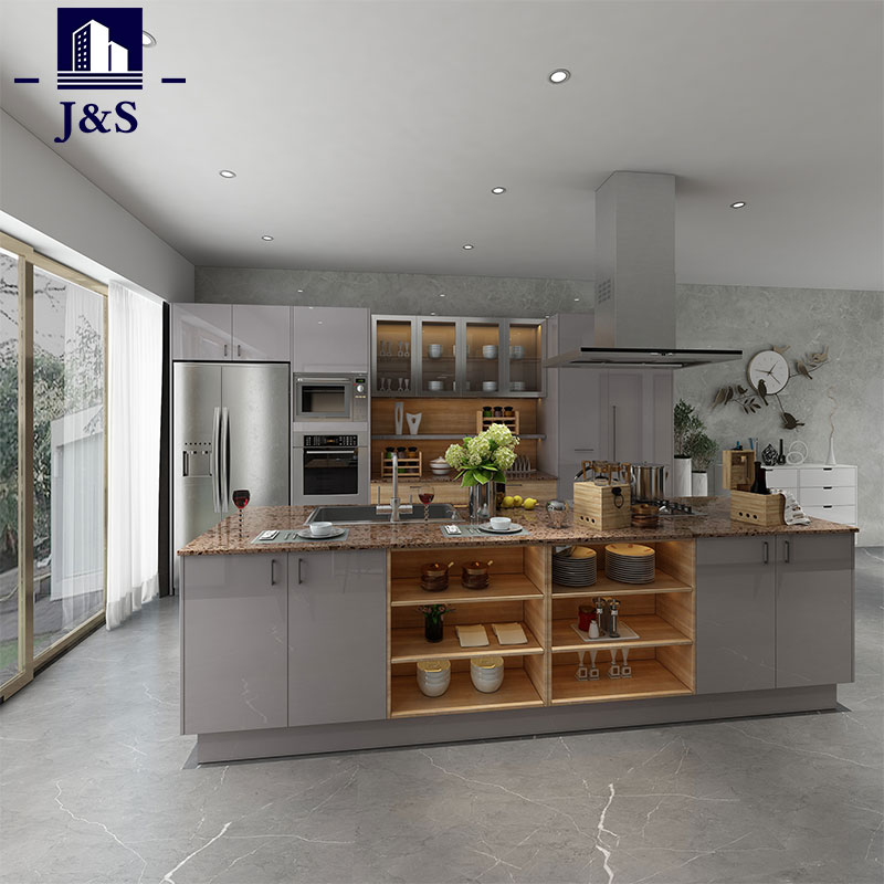 Mes tiekiame visiškai naują 2 pac durų virtuvės spintelę. 2 pac durų virtuvės spintelė, pagaminta iš lakuotų durų, yra II formos dizainas su sala, gilesnė sala su medinės spalvos atvira lentyna priešingoje pusėje, aliuminio stiklo durų sieninė spintelė.