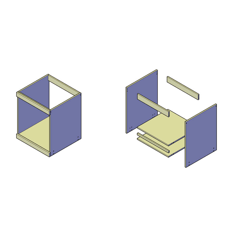 ☞Orkaitės pagrindo plokščių pakuočių spintelių korpusas pagamintas iš 18 mm medžio drožlių plokštės baltos spalvos melamino.