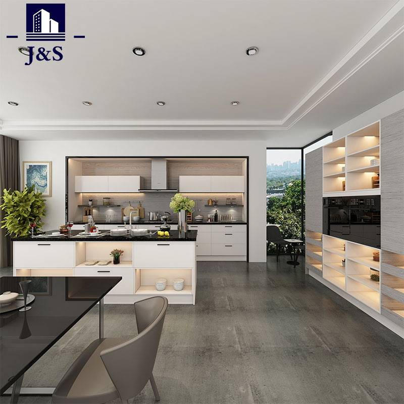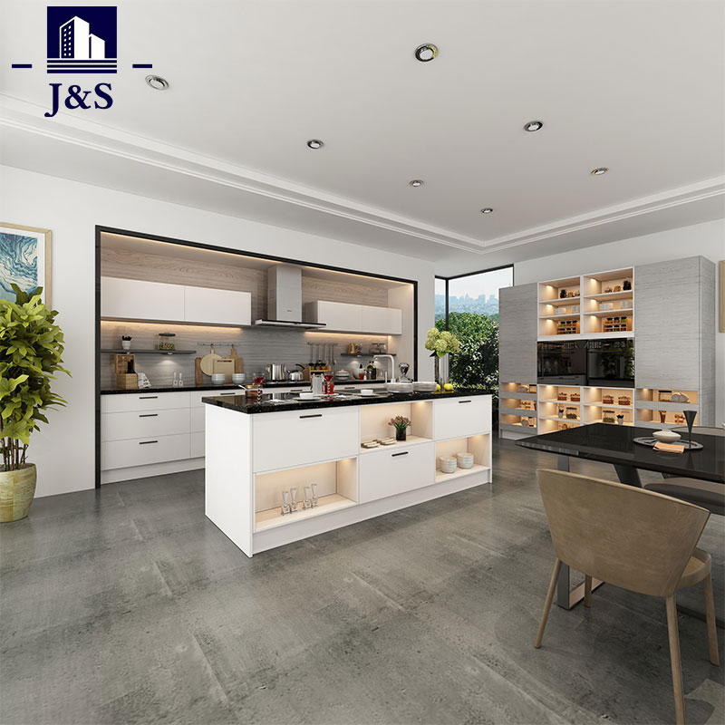 J&S tiekia vinilu apvyniotas virtuvės spintelės folija apvyniotas spintelių duris, aukščiausios kokybės stalčiaus priekį, plokštes, užpildus ir romėnišką stulpą, dekoravimo lentą. Pasirinkite aukščiausios kokybės MDF plokštę ekologišką medžiagą, įsitikinkite, kad po apdorojimo durų plokštė lengvai nesideformuoja.